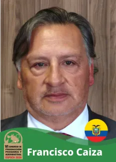 Francisco Caiza de la Cueva, Ph.D. en Reproducción Animal y Mejoramiento Genético, actualmente Gerente General de PRODUBIOGENSA y Director del Centro de Investigaciones en Biotecnología de la Reproducción Animal (CIBRAE) en la misma compañía desde 2001. Su extensa formación académica incluye un Doctorado en Biotecnologías de la Reproducción Animal de la Universidad Autónoma de Barcelona, múltiples postdoctorados en Mejoramiento Genético y Fertilización in vitro en Nueva Zelanda, Uruguay y Francia, y un Máster en Gestión y Responsabilidad Social y Ambiental. Ha ejercido como profesor en diversas universidades ecuatorianas, incluyendo la Universidad San Francisco de Quito, la Universidad Nacional de Loja, la Escuela Politécnica Superior del Chimborazo, y la Universidad Tecnológica Equinoccial (UTE) donde continúa enseñando actualmente. Su experiencia profesional abarca desde la administración de haciendas y asesoramiento técnico hasta la dirección técnica y gerencia general. Es un activo publicador en revistas científicas internacionales y conferencista nacional e internacional en temas de reproducción animal, mejoramiento genético y ganadería sostenible. Sus proyectos de investigación actuales se centran en la conservación de germoplasma, el rescate de razas criollas y la promoción de la ganadería sostenible. Actualmente, también está cursando una Diplomatura en Derechos de los Pueblos Indígenas.